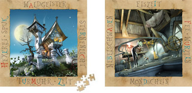 Thanks to the success of this mystery, Schmidt Spiele released the six known images as jigsaw puzzles. Each box contains two of the six images, and also includes a riddle-booklet. This in turn raises the question once more: who will find the seventh picture?
